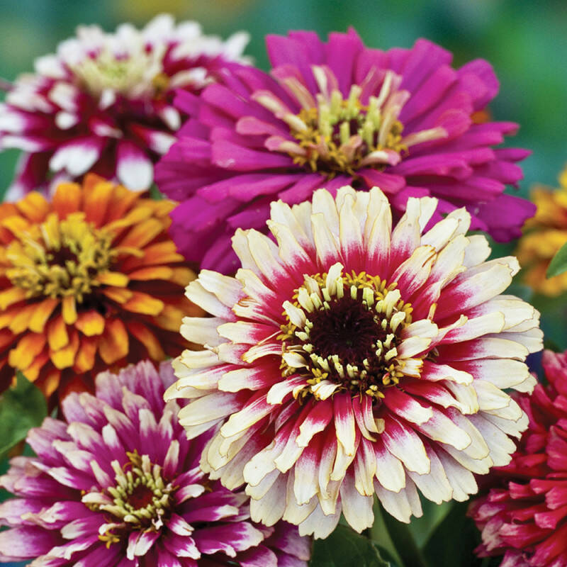 Цинія Карусель - однорічна швидкоростуча рослина висотою 50 см. Суцвіття великі, 7-10 см в діаметрі, з білими краями. Насіння висівають у парники в квітні. Сходи з'являються на 4 - 6 день. Пікірують один раз. На постійне місце висаджують на відстані 20 - 35 см. Можна висівати безпосередньо на постійне місце наприкінці квітня - початку травня. Цвіте рясно і тривало, з середини червня до морозів. Теплолюбна, найкраще росте на відкритих сонячних місцях, родючих ґрунтах і при рясному поливі. Вирощують на клумбах, рабатках, в групових посадках і для зрізу.
