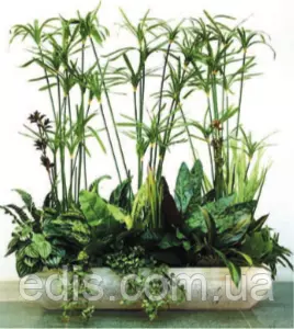 Циперус очереднолістний (Cyperus alternifolius) Циперус (сить, ситівник) - тропічні вічнозелені трав'янисті рослини із сімейства осокових. В природі всі види циперусів зустрічаються на болотах і в прибережній зоні водойм, досягаючи у висоту до двох і більше метрів. У кімнатних умовах Циперус очереднолістний (або зонтичний)рідко виростає вище 1,5 м. Як кімнатна рослина Циперус абсолютно невибагливий і підійде для будь-яких приміщень: житлових кімнат, громадських приміщень, балконів, терас. Молоді рослини можна вирощувати в акваріумах і штучних водоймах. Основна умова краси і здоров'я цього чарівного екзотичної рослини - завжди вологий грунт. Освітлення циперуси люблять яскраве, але розсіяне, добре ростуть і в півтіні. У зимовий час циперус чудово переносить прямі сонячні промені, але влітку від прямого сонця листя обгорають. У літній період оптимальною температурою близько +18...+22 градусів, а в зимовий період циперус воліє прохолоду, але не нижче +12...+14 градусів. Квітка дуже вологолюбні, тому його потрібно поливати рясно і часто, щоб грунт був постійно вологим. Скорочують полив тільки взимку, якщо знижується температура повітря. Листья нуждаются в высокой влажности, поэтому их тоже нужно часто опрыскивать отстоянной водой. В зимнее время, когда воздух в помещении особенно сухой, у циперуса сохнут кончики листьев. Также циперус нуждается в свежем воздухе, поэтому идеально - перенести его на тёплое время года на балкон или террасу. В весенне-летний период подкармливают растение один раз в 2 недели комплексным удобрением для декоративно-лиственных растений. Если зимой циперусу достаточно света и тепла, он продолжает активно расти - в таком случае подкормки нужно продолжать в половинной дозе или подкармливать реже. Пересаджувати квітка при необхідності можна протягом усього року, якщо коріння вже тісно в горщику. Грунт для циперус повинен бути влагоемким, повітропроникним і поживним. Рослину можна розмножувати насінням, верхівковими живцями, поділом куща. Найшвидший спосіб розмноження - поділ кореневища при пересадці. Верхівкові живці циперус дуже просто вкорінюються у воді. При цьому є цікава особливість - зрізані живці ставлять у воду "догори ногами". У кімнатних умовах, особливо в зимовий час, циперуси можуть пошкоджуватися попелиць і павутинним кліщем.