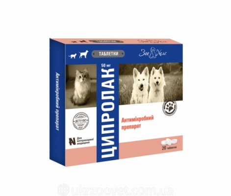 Ципролак 50 мг таблетки №20 ЗооХелс (1 таблетка на кожні 10 кг маси)