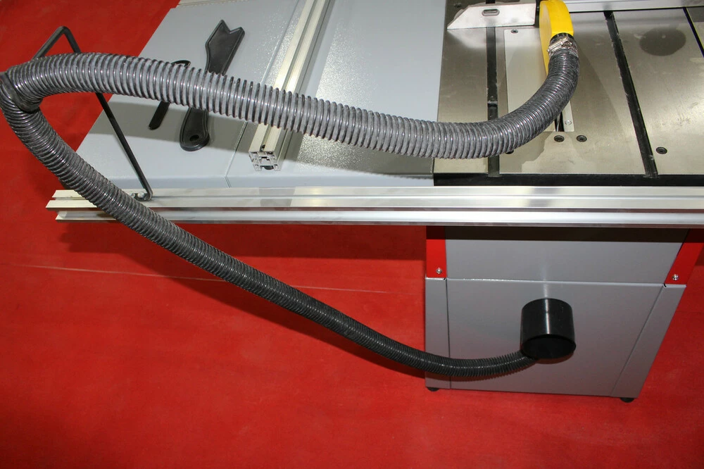 Защитный кожух пильного диска имеет патрубок для удаления стружки, который подключается к основному патрубку внешней аспирационной системы.