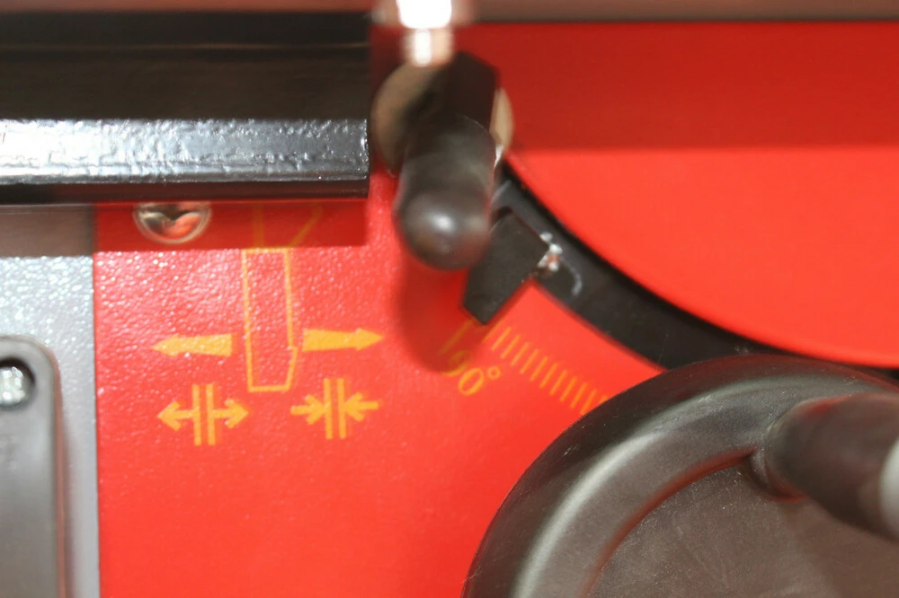 При помощи ручного маховика по шкале можно отрегулировать высоту пильного диска над рабочим столом и таким образом контролировать глубину пропила. Кроме того есть возможность изменять наклон пильного диска от 90° до 45°.