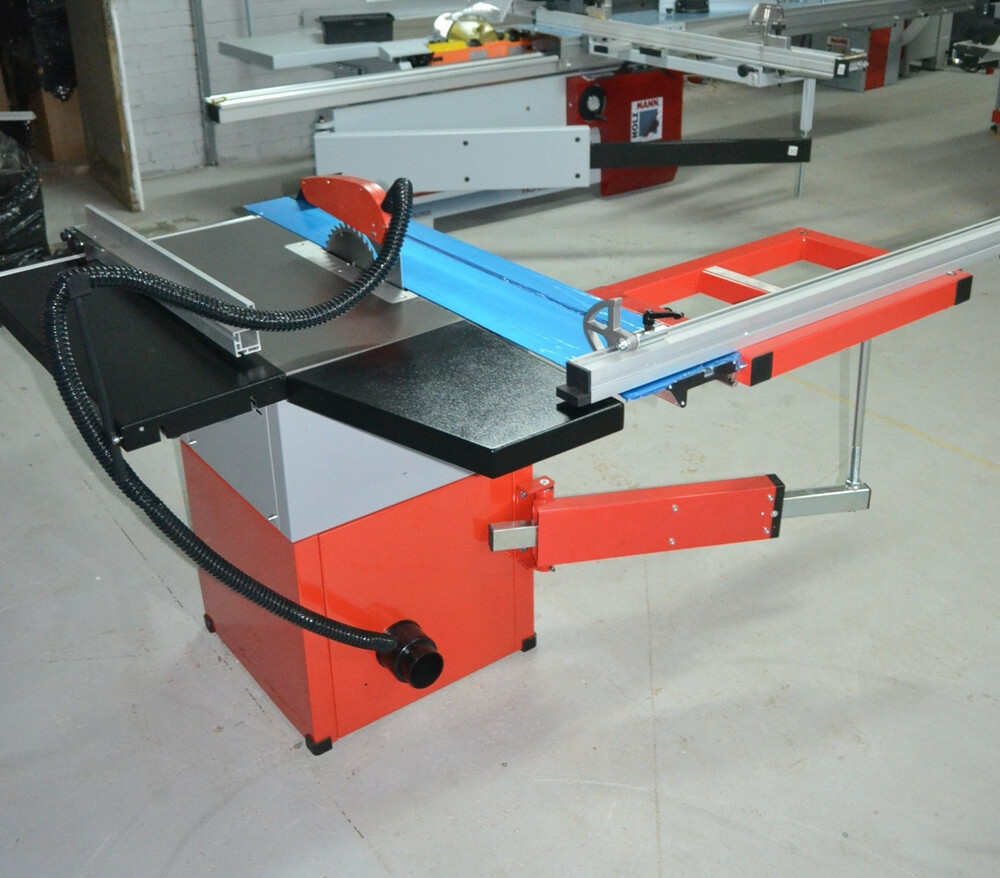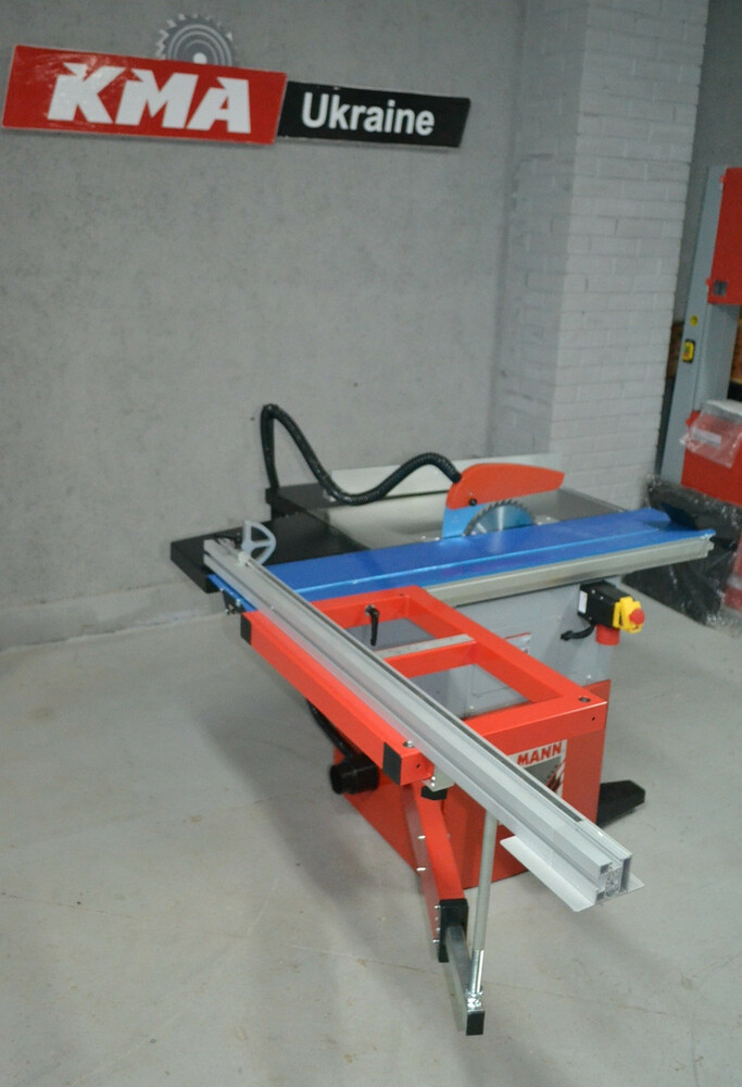 Комплект поставки: Твердосплавный пильный диск (HM) 254 мм, защитный кожух пильного диска с патрубком для вытяжной системы, обрезной башмак, удлинитель стола, расширитель стола, консоль, выдвижной телескопический упор, откидной упор, параллельный упор, толкатель
