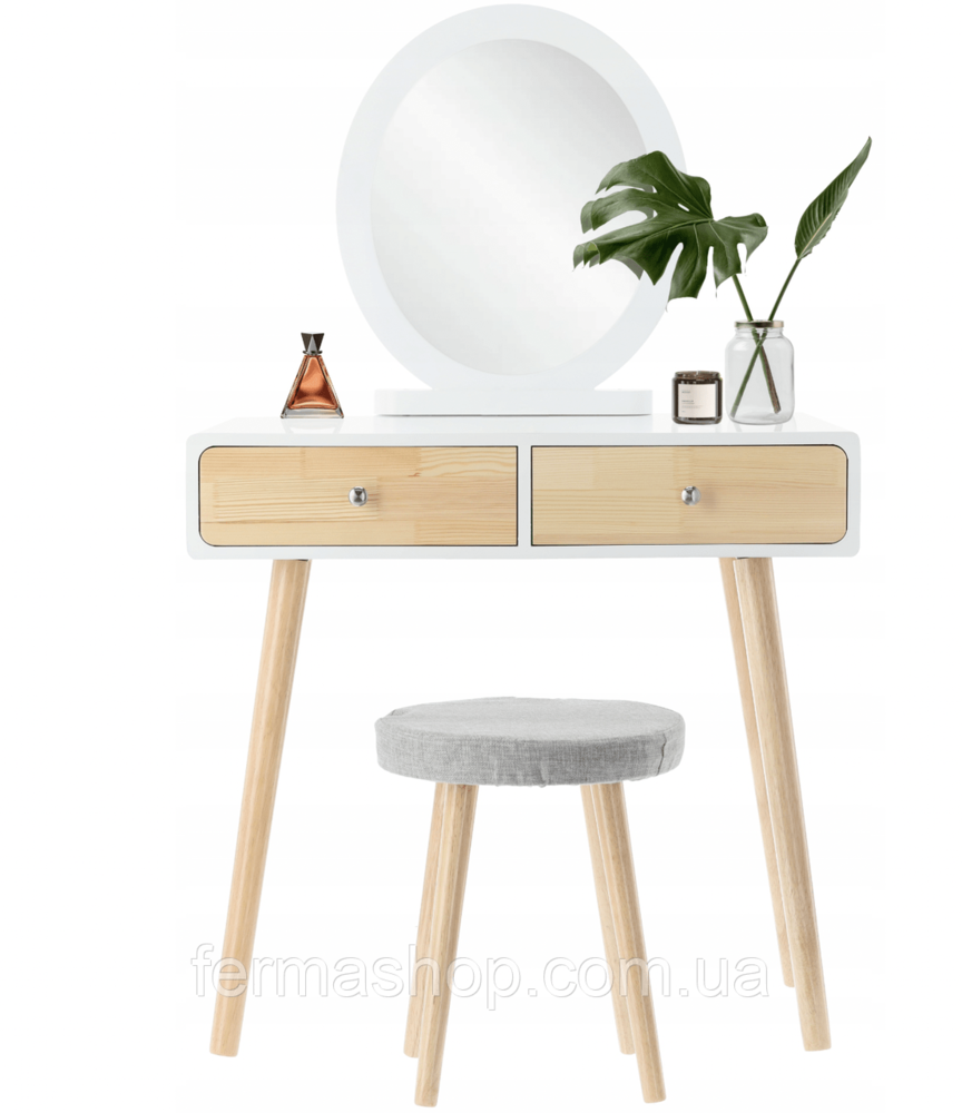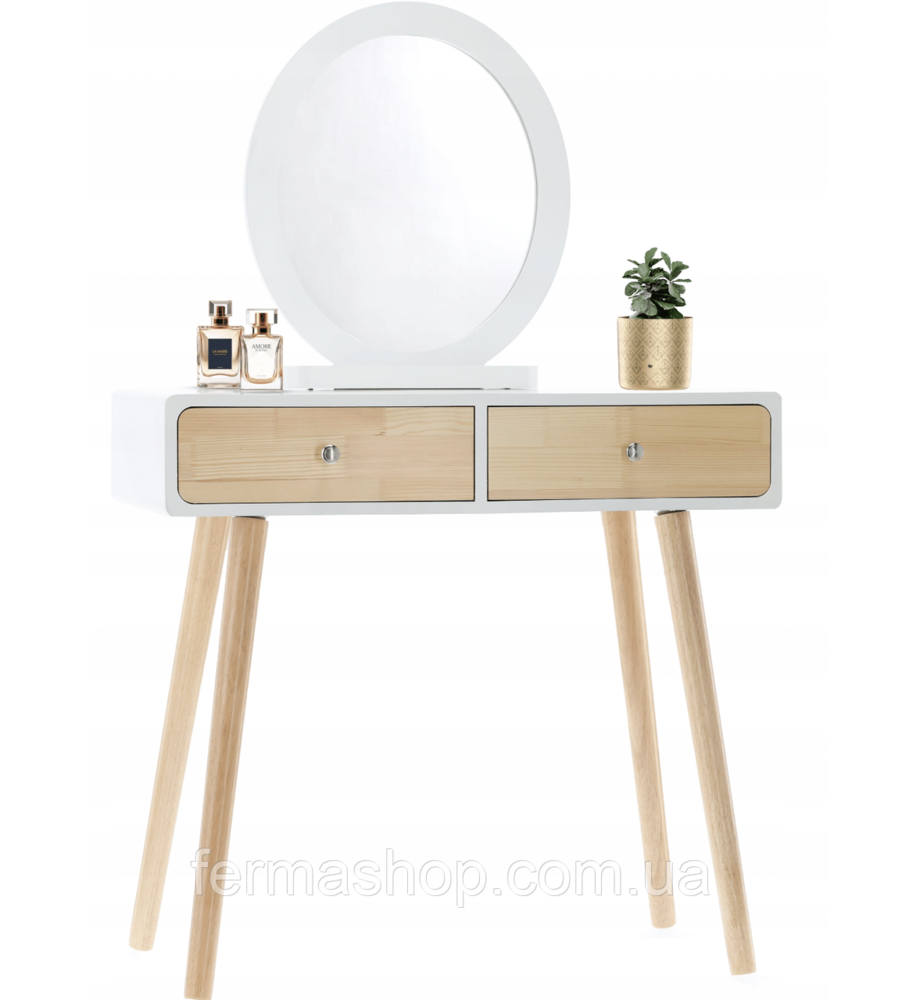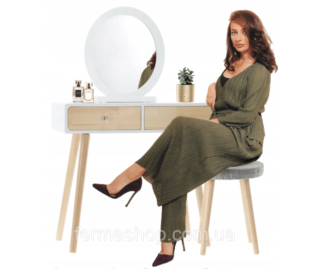 Туалетный столик оснащен большим практичным зеркалом, которое