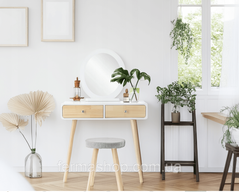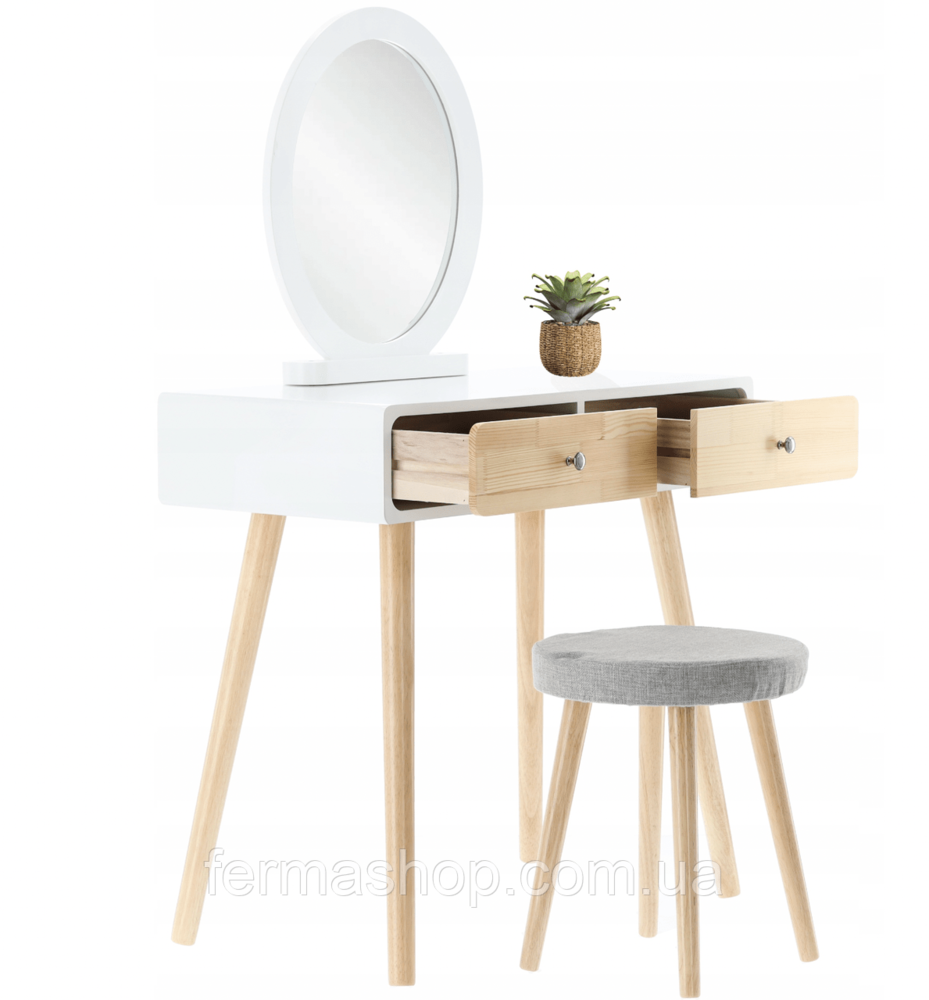 Косметический туалетный столик белого цвета с уникальным дизайном,