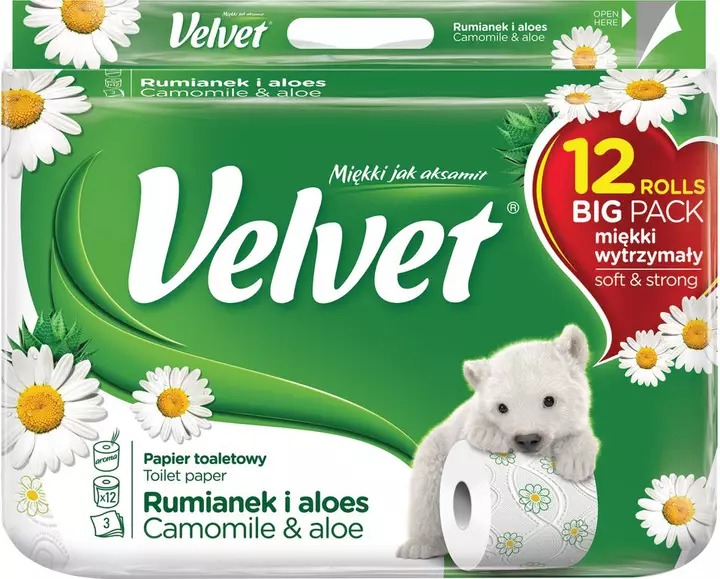 Туалетний папір Velvet Білий з ароматом ромашки — це поєднання ніжності, природного аромату та надійної якості. Завдяки трьом шарам м’якої целюлози, папір забезпечує комфорт і дбайливий догляд, залишаючись міцним навіть у вологому стані. Легкий аромат ромашки створює відчуття чистоти та свіжості, а приємне рельєфне тиснення додає об’єму й покращує вбирання. Кожен рулон містить 153 відриви, що забезпечує зручність та економічність у використанні.