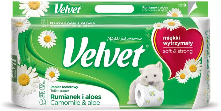 Туалетний папір Velvet Ромашка й Алое 3 шари 8 рулонів 150 відривів (5901478999030)