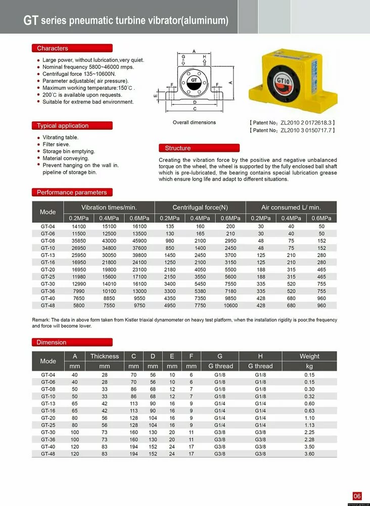 Особенности GT Series Turbine Vibrator
