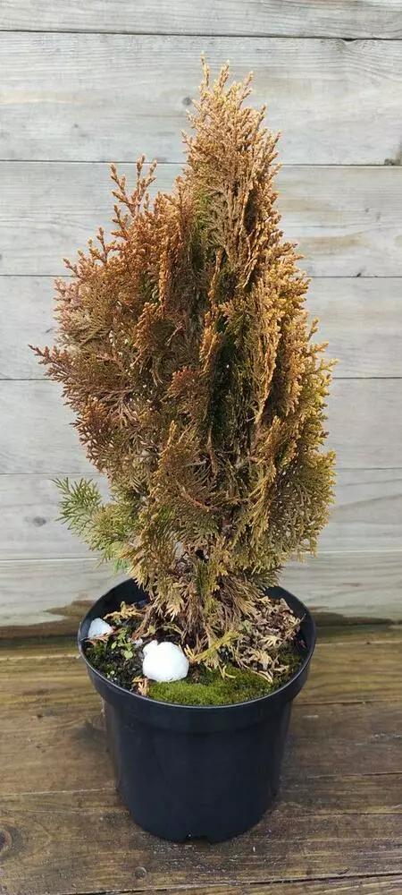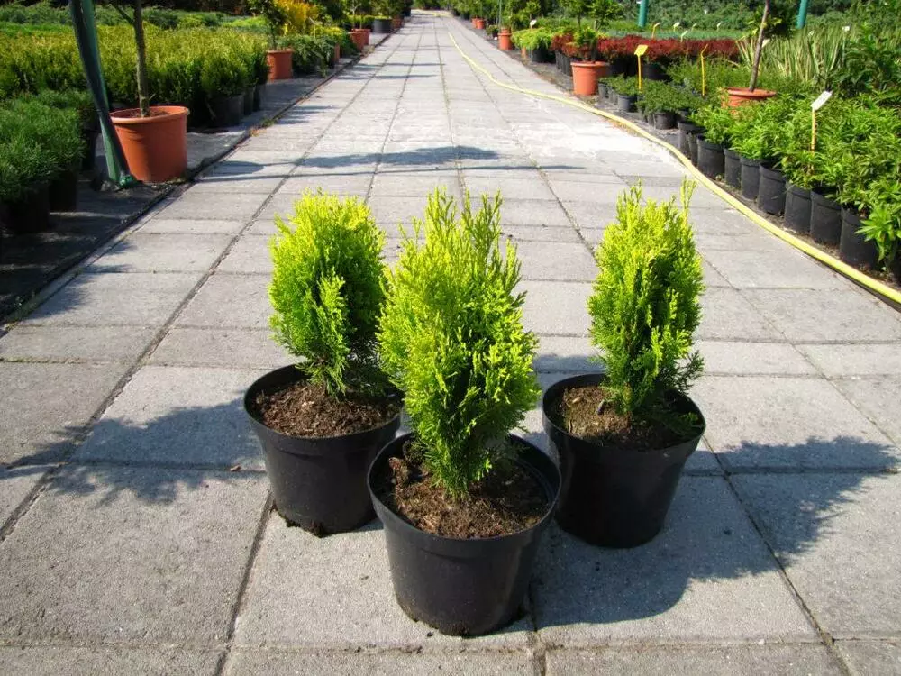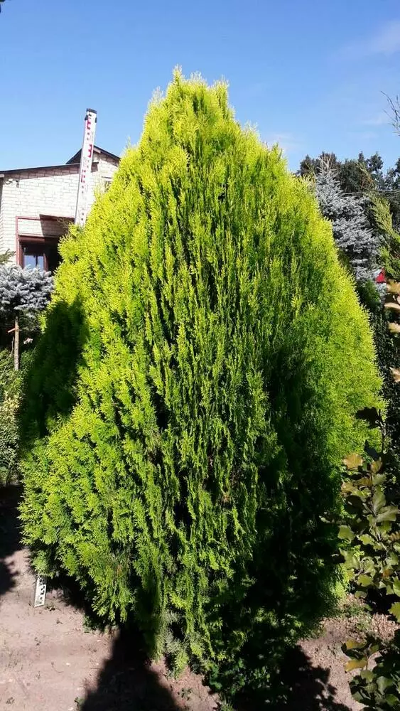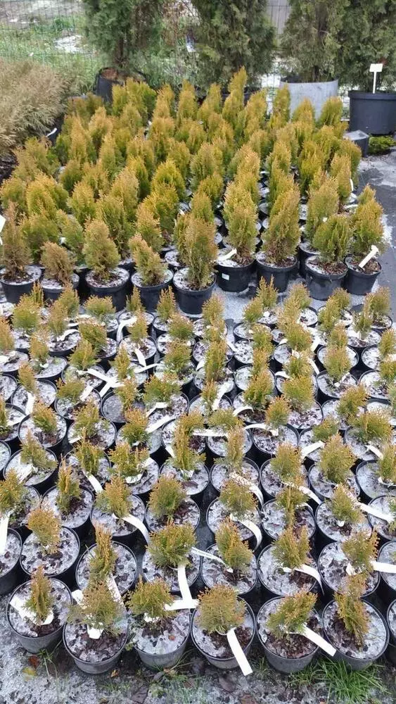 Туя східна Ауреа Нана/ Thuja Platycladus orientalis Aurea Nana - вічнозелене компактне дерево. Зацікавлює своєю складчастою хвоєю. Невисока туя східна, повільно зростає з щільною яйцеподібною формою крони. Не вимагає стрижки для формування. Дерево має яскраву золотисто-жовту хвою. Гарно виглядає в клумбах усіх стилів, в поєднанні з іншими хвойними або квітучими кущами.