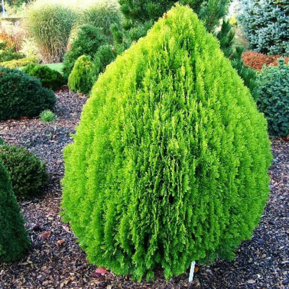 Туя східна Ауреа Нана/ Thuja Platycladus orientalis Aurea Nana - вічнозелене компактне дерево. Зацікавлює своєю складчастою хвоєю. Невисока туя східна, повільно зростає з щільною яйцеподібною формою крони. Не вимагає стрижки для формування. Дерево має яскраву золотисто-жовту хвою. Гарно виглядає в клумбах усіх стилів, в поєднанні з іншими хвойними або квітучими кущами.
