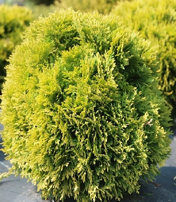Карликовий, повільнозростаючий надзвичайно компактний сорт туї з кулястою формою крони, що з віком матиме дещо подушковидну форму. Хвоя ніжна, густа, жовто-оливкового забарвлення протягом всього року. До ґрунтів невибагливий, проте краще росте на родючих, кислих, дренованих грунтах. Ідеальний сорт в якості солітера, а також як колірний акцент в композиціях з багаторічниками. Виграшно виглядає на тлі інших сортів туй з зеленим кольором хвої.