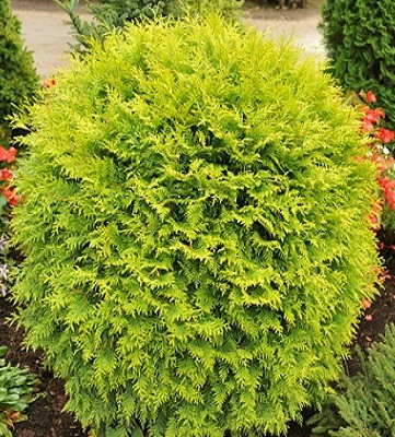 Привертає увагу поєднанням щільної округлої форми крони і золотисто-зеленої хвої з приємним ароматом. У 10-ти річному віці досягає 0,5-0,6 м. ''Globosa Aurea '' перекладається як 'золота куля'. Хвоя лускоподібна, густа, взимку золотисто-жовта, при розпусканні яскраво-жовта. Зимостійкість висока. Краще розвивається в півтіні. До родючості грунту невимоглива, але віддає перевагу вологим, досить родючим грунтам. Погано переносить сухість повітря.Чудова для одиночних і групових посадок, бордюрів, в якості солітера, кам'янистих гірок.