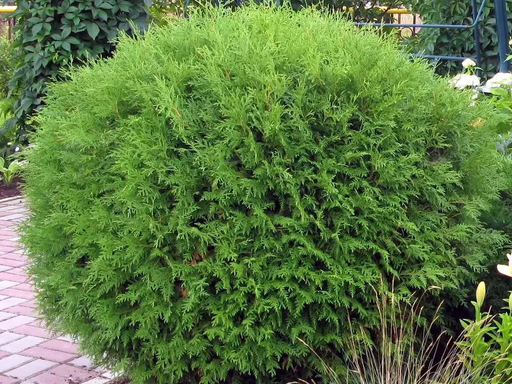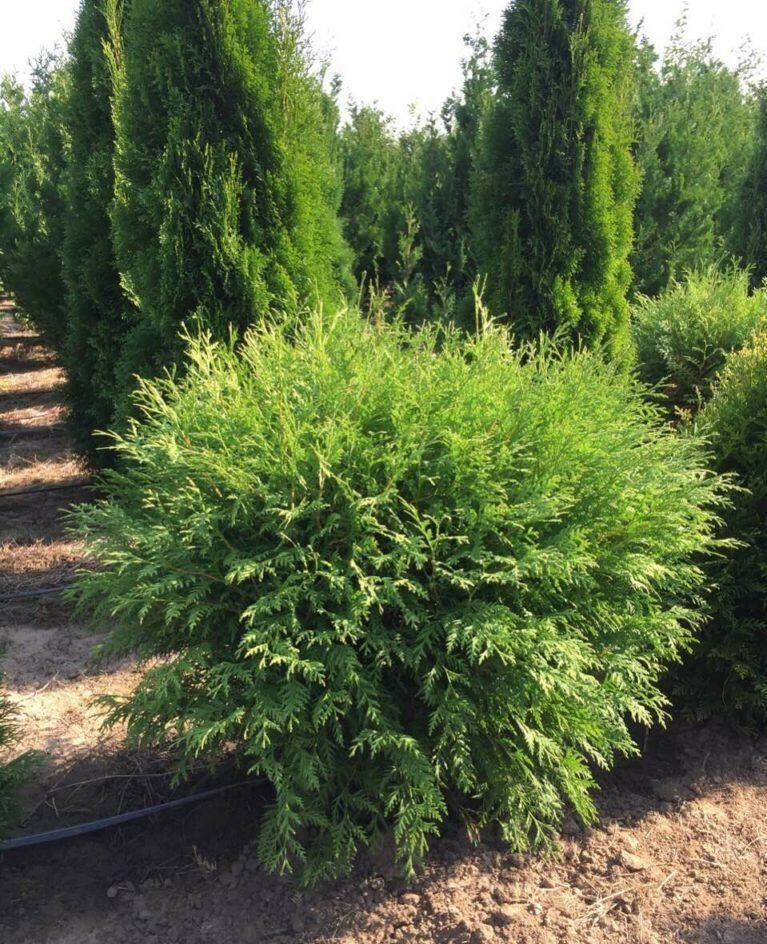 Туя західна Глобоза (Thuja occidentalis Globosa) .- не висока хвойна рослина, кулястої форми. Крона пухка, для щільної густої крони потребує формування. Має швидкий ріст і не аби яку популярність серед садоводів та дизайнерів. Висота дорослого дерева: діаметр крони до 1,5 м. Зовнішній вигляд: пагони туї спрямовані вгору, але розростаються в різні боки. На стовбурі гілки розташовуються щільно і перекривають один одного. Має лускату хвою, навесні світло-зелену, потім плавно змінюється забарвлення влітку на зелений колір, а до зими стає сіро-зеленою або коричневою. Ґрунт: росте на суглинних, трохи зволожених грунтах. Місце посадки, морозостійкість: добре переносить тінь, але на добре освітленій ділянці його крона формується швидше і гармонійніше.. Морозостійкість висока. Застосування в ландшафтному дизайні: висаджують на ділянках в низьку живу огорожу або для формування топіарних форм. Рекомендації по вирощуванню: кожна рослина любить увагу: полив, добрива, формування. При посадці коренева шийка повинна бути на рівні з землею (як посаджено в горщику). Полив потрібно контролювати особливо в період приживлюваності, дуже вразлива до перезволоження (зменшення поливу восени). Не забуваємо і "смаколики" для нашої красуні - підгодувати добривом азотним або NPK - навесні та влітку і без азотним - восени.