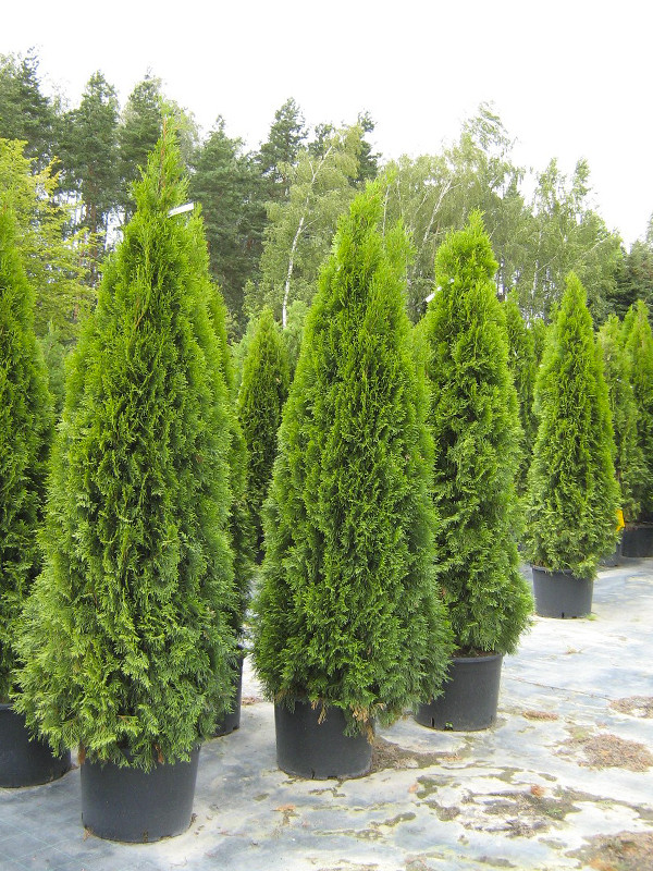 Саджанці туї західної 'Смарагд' краще купити в пластиковому контейнері з добривами, так рослина не піддається викопуванню з неминучим пошкодженням кореневої системи і після посадки гарантовано приживається.