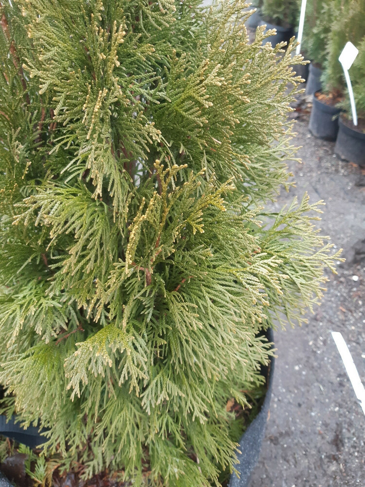 Досить швидко зростаючий сорт правильної, вузької конічної форми. Крона щільна, пагони прямостоячі, гілочки розташовані вертикально. Виростає до 5 м у висоту, близько 1,5 - 2 м в ширину.