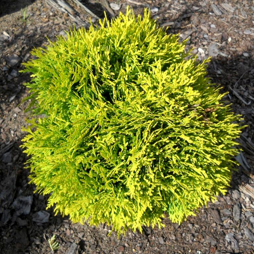 Порід чагарник кулястої форми, висотою не більше 0,8 м у діаметрі. Крона щільна, листя жовте, лускоподібне. Взимку хвоя набуває бронзового забарвлення, навесні знову стає яскраво-жовтою. ;">Особливості вирощування