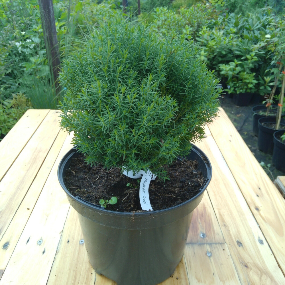 Туя західна Тедді (Thuja occidentalis Teddy) – хвойний кущ кулястої форми, компактний і дуже декоративний. Навесні має світло-салатовий м'який приріст, що надає особливої привабливості та милості рослині. Туя західна дуже декоративна і з нею можна скласти багато композицій та урізноманітнити клумби вічнозеленим милим кущем.