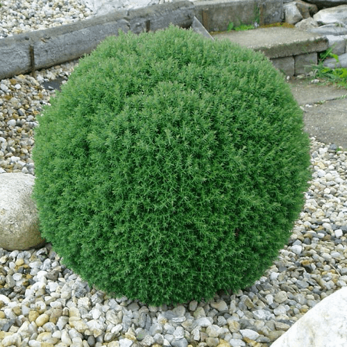 Розмір дорослої рослини: кулястий хвойний кущ - зростає до 0,5 м.