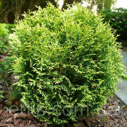 чешуевидная хвоя зеленого цвета, а молодая поросль – золотисто-зеленая;