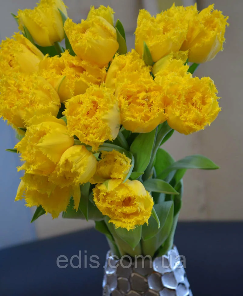 Тюльпан бахромчатий махровий Мон Амур Неймовірної краси тюльпан, самий вражаючий серед жовтих бахромчатих тюльпанів. Величезні, пухнасті бутони яскраво-жовтого кольору.
