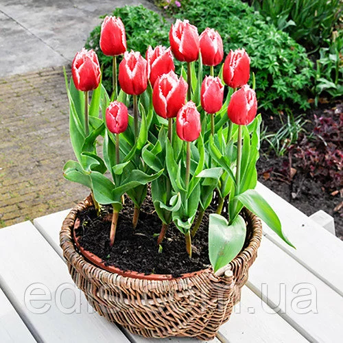Цибулини тюльпанів калібру 10/11 вважаються садовими, але і для вигонки на зріз цей калібр часто застосовують. В магазині Едіс цибулини тюльпанів калібру 10/11 оптом можна купити з травня по грудень. Упаковка – картонна коробка з великим повнокольоровим фото для вітрини.