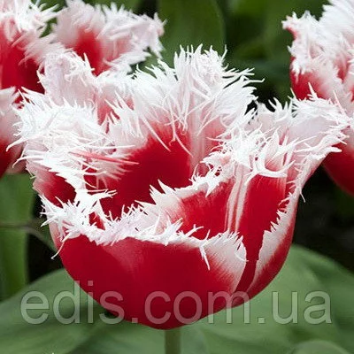 пелюстки яскраво-червоного кольору з білою бахромою;