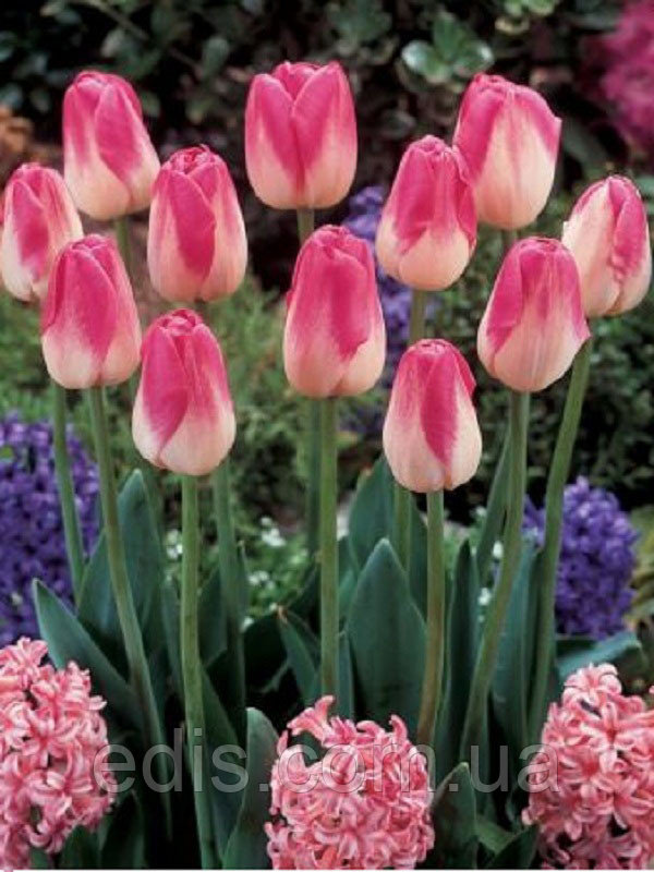 Світла основа квіток надає легкості клумбі, тому з цим тюльпаном сміливо можна висадити більш низькі великі квіти, які заповнять нижній ярус. Добре буде виглядати нижній ярус як світлого, так і більш насиченого, темного кольору. Наприклад, спробуйте кремові, рожеві, бордові гіацинти або махрові пізні тюльпани.