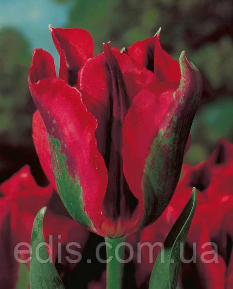Голливуд – настоящий зелёноцветковый тюльпан, потому что у него зелёный цвет не просто присутствует как штрих, а именно основной окрас сине-зелёный, бутоны выглядят как зелёные с красной каймой. Лепестки широкие, с волнистым краем и коротко-заостренным кончиком. Что-то есть у этого сорта и от попугайных тюльпанов, особенно если учесть ещё и крупный размер цветка на сравнительно невысоком, прочном стебле, что характерно для попугайных.