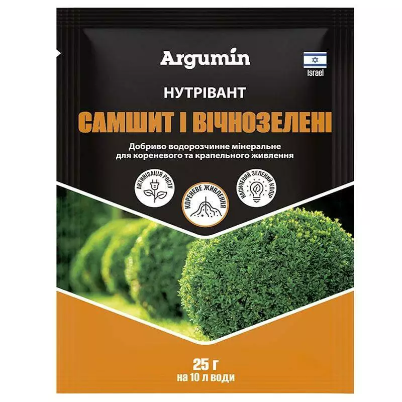 Добриво Нутрівант Самшит і вічнозелені водорозчинне мінеральне для кореневого та крапельного живлення протягом усього вегетаційного періоду. Завдяки своєму збалансованому складу макро- та мікроелементів легко засвоюється рослинами та відповідає їх фізіологічним потребам. Застосування добрива активізує ріст і повноцінний розвиток рослини. Сприяє покращенню декоративних властивостей.