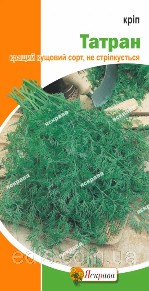 Середньопізній кущовий сорт. Темно-зелена зелень має сильний, різкий аромат і терпкуватий свіжий смак. Татран довго не стрілкується, тож урожай можна зрізати до 4 разів за сезон. Такий кріп можна виростити на балконі або на грядці, головне забезпечити його сонячним світлом та пухким ґрунтом.