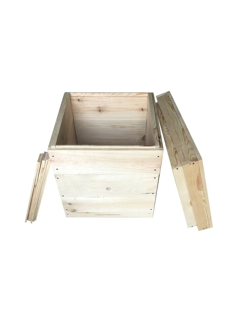 Комплектация: крыша, подкрышник, корпус для рамок Дадан – 1 шт., магазинная надставка -1 шт.; уплотнительные планки (потолочинны), съемное глухое дно.
