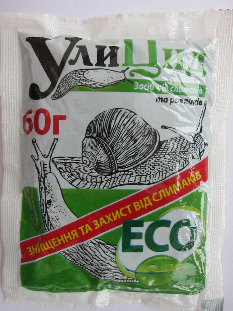 Улицид Эко — высокоэффективное натуральное средство. Применяется для борьбы со слизнями и улитками. Уничтожает вредителей кишечно-контактным способом. Моллюски гибнут в течение часа после применения, срок действия — 20 дней. Не является опасным для человека и окружающей среды. После истечения времени действия, средство разлагается в почве на полезные для растений вещества — железо и фосфор. Устойчив к смыванию осадками.