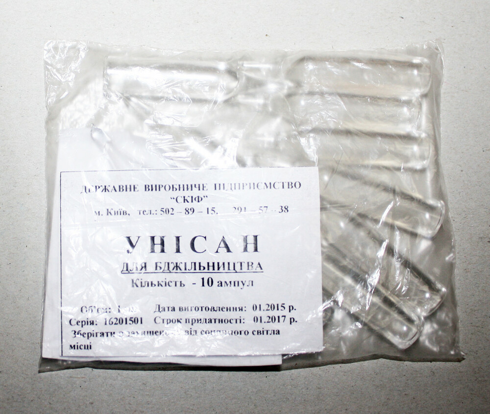 За несприятливих погодних умов препарат згодовують бджолам із цукровим сиропом із розрахунку 1 мл унісану на 1 л цукрового сиропу (1:1) за норми витрати по 250 мл на 1 сім'ю бджіл. Лікувальні обробки проводять 3 - 4 рази з інтервалом 7 днів до зникнення клінічних ознак захворювання.