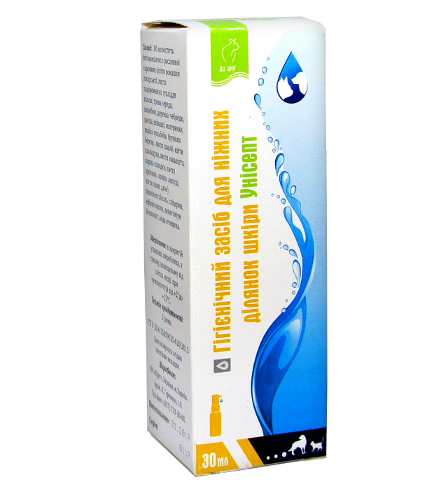 Гігієнічний засіб для ніжних ділянок шкіри "Унісепт" являє собою прозору рідину світлого кольору зі слабо вираженим запахом. Містить компоненти, що дають змогу делікатно доглядати за шкірою домашніх тварин, пом'якшуючи її та очищаючи від скупчення бруду, не порушуючи природних рівнів вмісту шкірного сала. Натуральна гіркота перешкоджає злизуванню ураженої шкіри травматичного походження, саден, подряпин, хірургічних ран, швів. Гігієнічний засіб для ніжних ділянок шкіри "Унісепт" виключає необхідність у бандажі, добре очищуючи та знімаючи запалення в чутливих місцях.