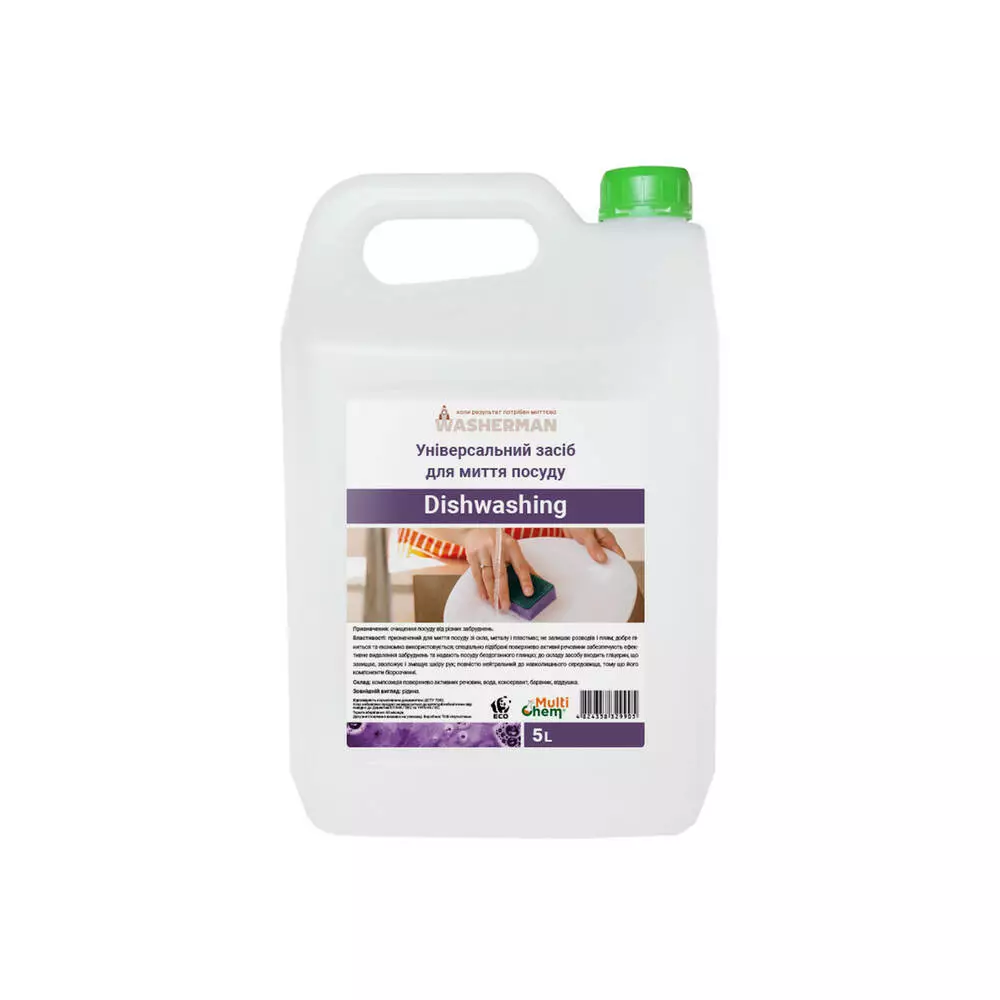 Dishwashing — це універсальний засіб для миття посуду, призначений для використання на посуді зі скла, металу та пластмаси. Засіб добре піниться, ефективно видаляє забруднення і не залишає розводів або плям на посуді. Спеціально підібрані поверхнево активні речовини гарантують відмінний результат, забезпечуючи посуду бездоганний глянець. Важливим компонентом є гліцерин, який захищає, зволожує та змащує шкіру рук, що робить миття більш комфортним.