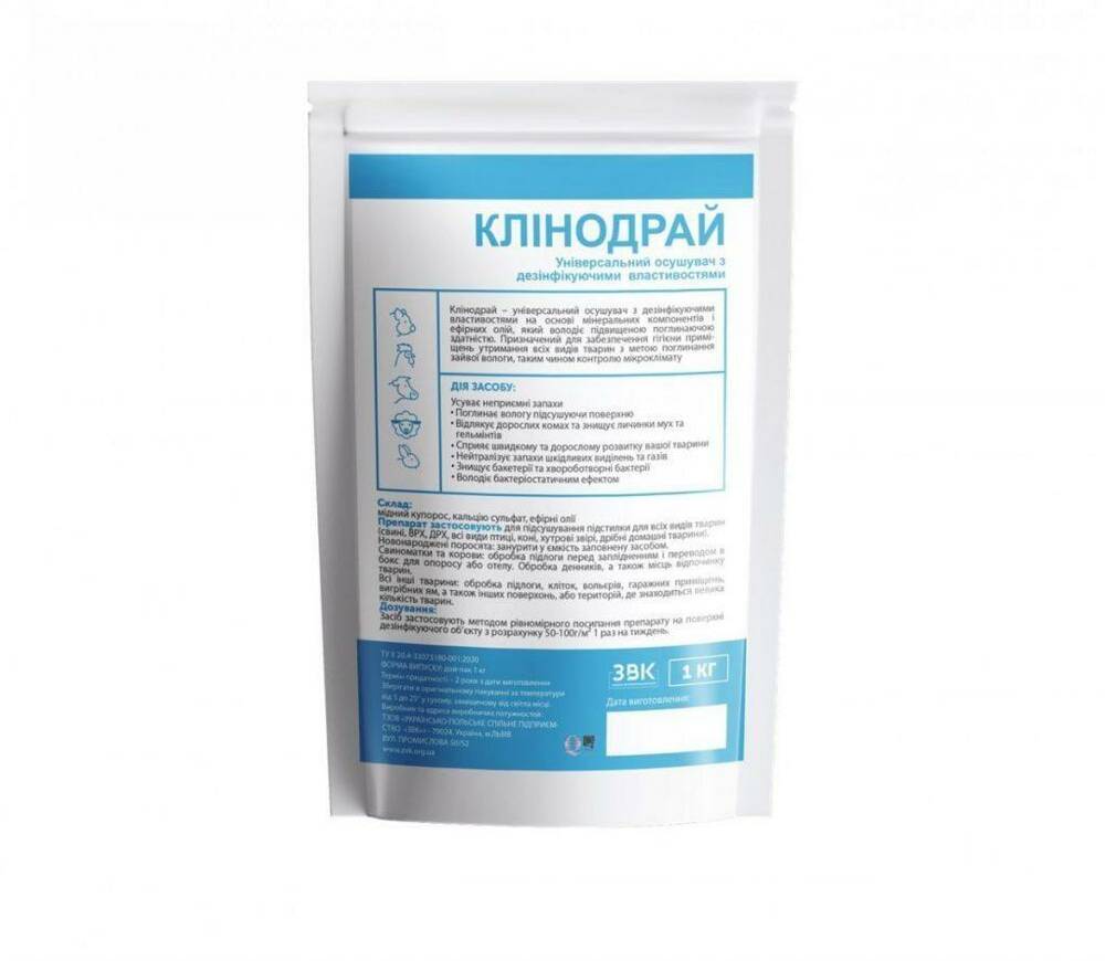 У результаті використання Клінодраю® забезпечує господарю сухість і чистоту в приміщеннях для тварин, значно знижуючи ризик захворювань. Засіб також допомагає зберегти здоров’я новонароджених тварин, покращує мікроклімат, зменшує неприємні запахи і відлякує шкідників.