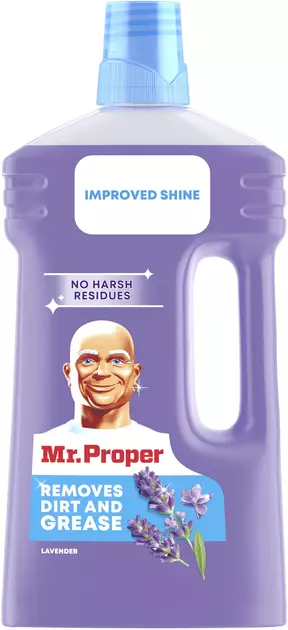 За допомогою універсального засобу для миття Mr. Proper можна чистити майже всі види твердих поверхонь у домі. Він підходить для чищення раковин, забруднених жиром кухонних плит і для регулярного миття підлоги. Рідкий засіб Mr. Proper видаляє бруд і жир, не залишаючи розводів. Відкрийте для себе найяскравіший блиск від Mr. Proper. Наповніть свій дім ароматом квітів бавовни.