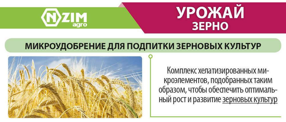 Урожай Зерно ENZIM Agro - комплекс мікроелементів для зернових культур в хелатній формі, підібраних таким чином, щоб забезпечити оптимальний ріст і розвиток зернових культур. Підвищений вміст азоту в доступній для рослин формі дозволяє застосовувати добрива у формі хелатів для коригування якісних показників зерна при застосуванні у відповідних фазах онтогенезу.