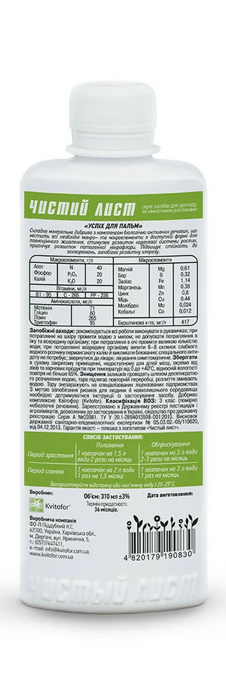 Успіх для пальм, комплексне добриво, 310 мл — Чистий лист