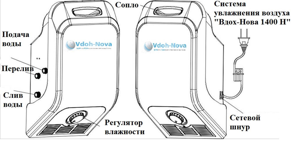 Характеристики и комплектность системы увлажнения Вдох-Нова 1400 Н