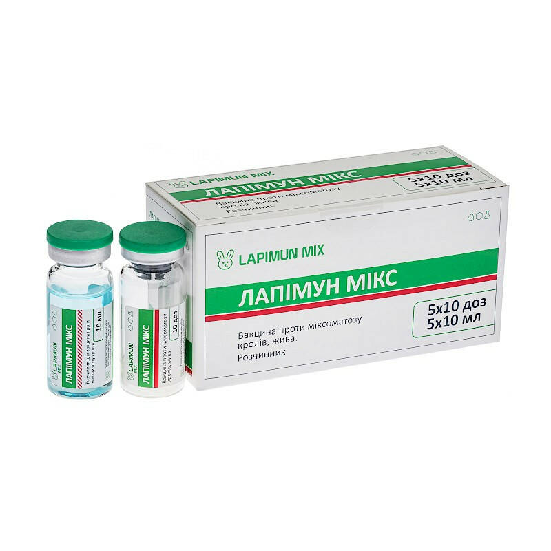 Вакцина Лапімун мікс проти міксоматозу кроликів, фармацевтична форма - ліофілізат, або ліофілізат та розчинник..