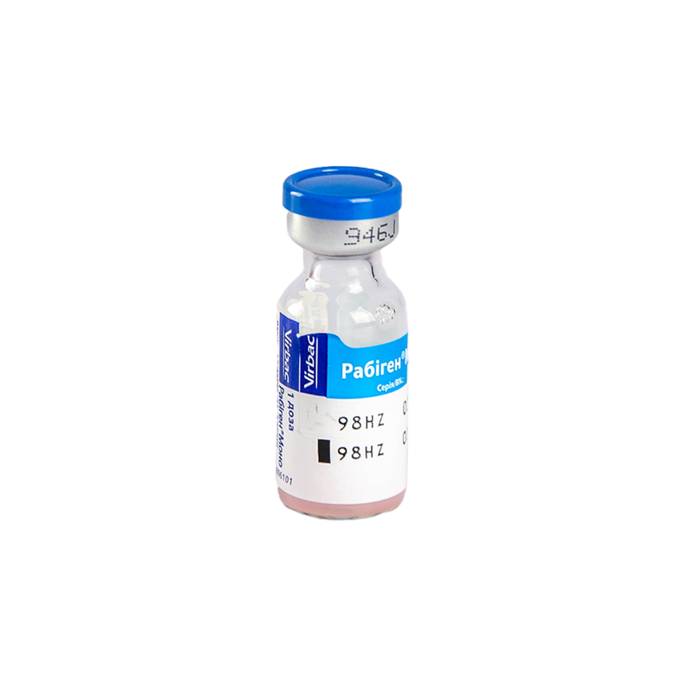 Вакцина Рабіген Моно 1 флакон для профілактики сказу у дорослих кішок і собак (по 1 дозі у флаконі)