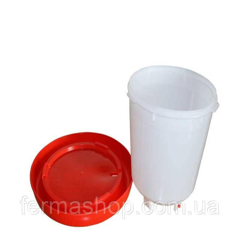 Дно поилки надежно фиксируется к резервуару с помощью защелок, что позволяет удобно переносить поилку, взявшись за пластиковую ручку.