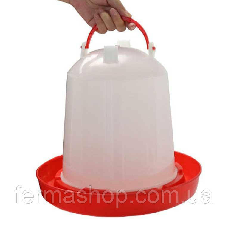 Информация о поилке: Объем бункера: 1,5 л с ручкой Изготовлена поилка из качественного пластика, который обладает хорошей прочностью. Дно поилки надежно фиксируется к резервуару с помощью защелок, что позволяет удобно переносить поилку, взявшись за пластиковую ручку. Принцип действия поилки: в колбу набирается чистая вода, на нее закрепляется дно поилки, затем все это быстро переворачивается и ставится на ровную поверхность.