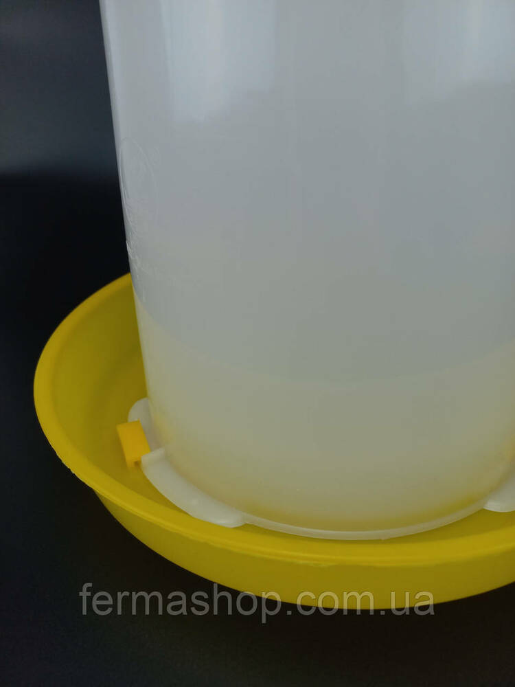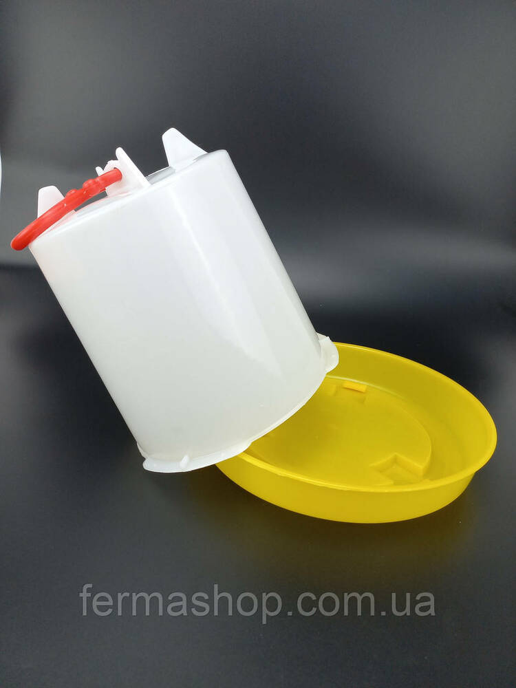 Дно поилки надежно фиксируется к резервуару с помощью защелок, что позволяет удобно переносить поилку, взявшись за пластиковую ручку.