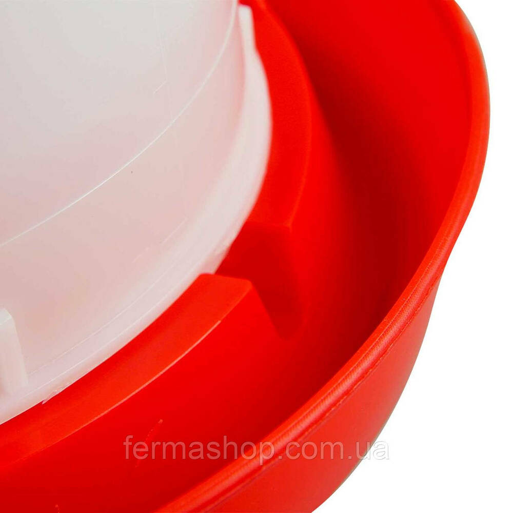 Дно поилки надежно фиксируется к резервуару с помощью защелок, что позволяет удобно переносить поилку, взявшись за пластиковую ручку.