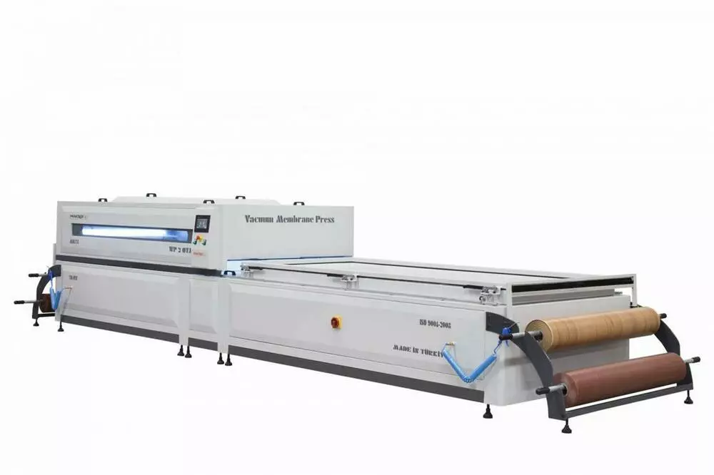 Ламинирование пленкой ПВХ и материалов GPET, в плоских или трехмерных приложениях ламинирования на таких материалах, как плита МДФ, фанера. Это профессиональная машина, предназначенная для использования в производстве шпона из натурального дерева, формовании, производстве различной мебели и шпона, а также для нанесения покрытий на двери и шкафы, кухонные панели, двери шкафов ванных комнат и спален.