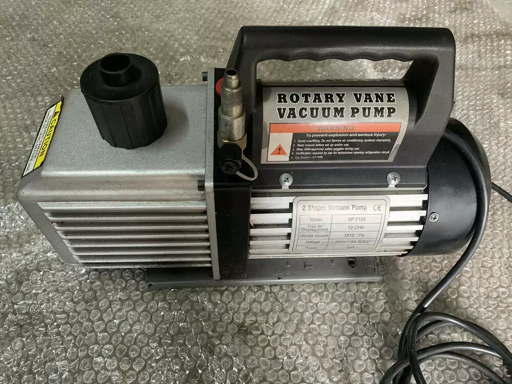Насос вакуумний двоступеневий 340 л/хв призначений для вакуумування фреонових магістралей у системах охолодження й кондиціонування, виготовлений з алюмінієвого корпусу (який добре розсіює тепло) як єдиний пристрій без редуктора (для більшої компактності та зниження ваги), з еластичною муфтою між рухомими частинами (для низького шуму та вібрації).