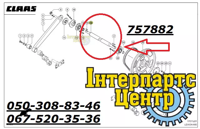 Вал коливального приводу – вал гуркоту. Номер за каталогом 757882.1, 7578821, 000757882, 000757882.1, 0007578821. Запчастина для зернозбиральних комбайнів Claas Lexion 600 (X4). Аналог.