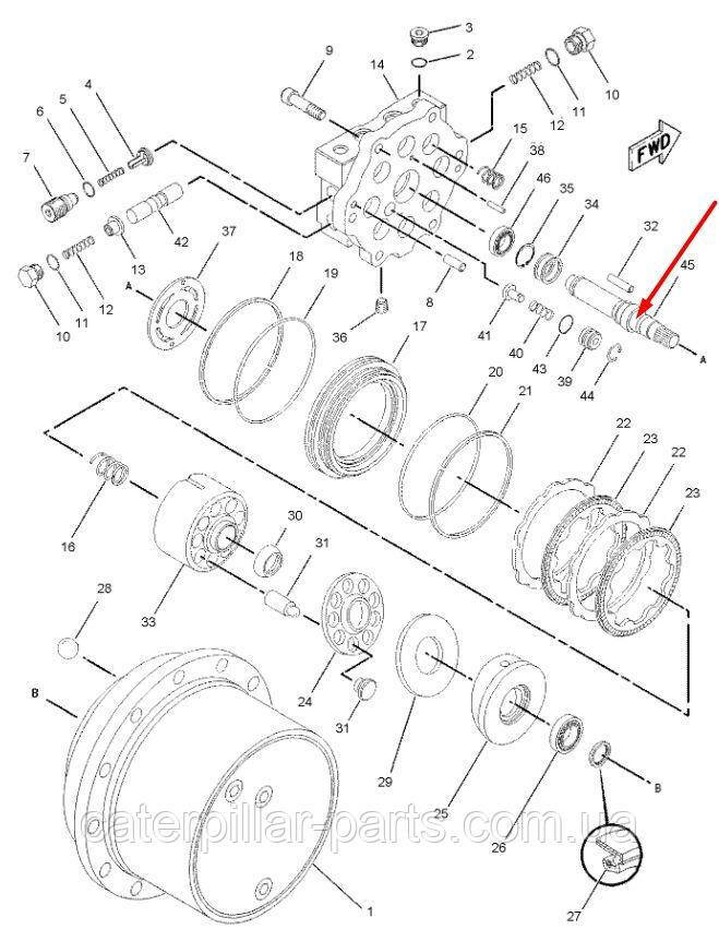 Вал гідромотора ходу 7I-2331 Caterpillar 307, 307B, E70B
