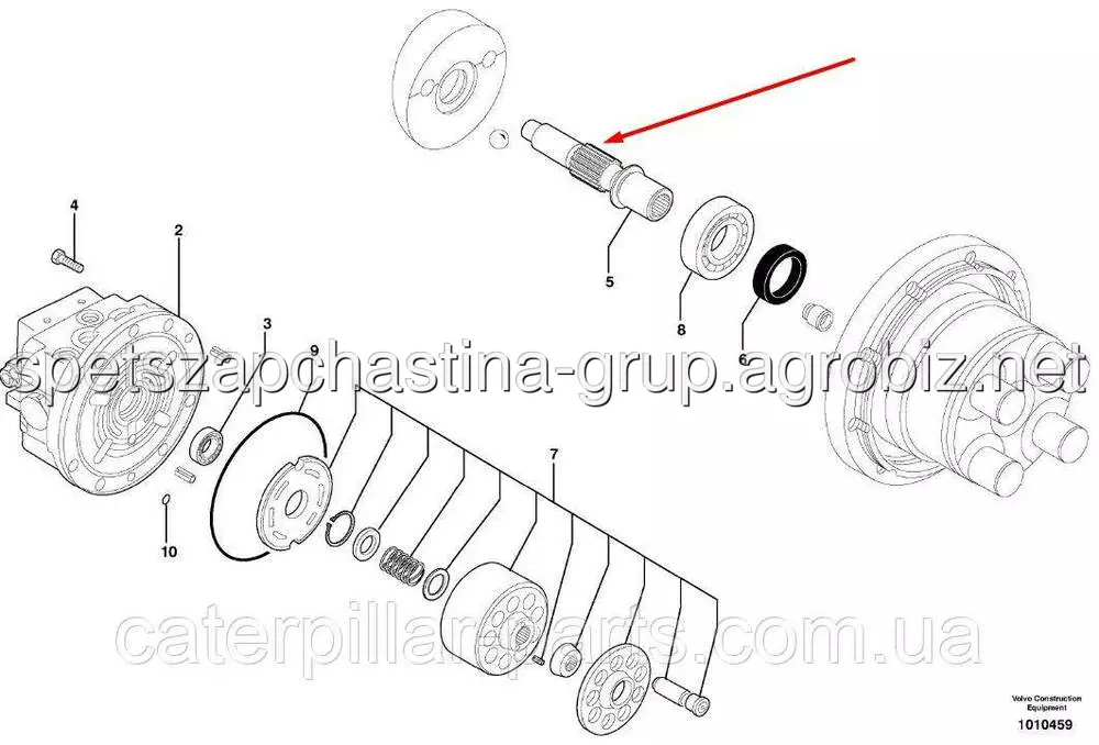 PJ7417229 вал ходового редуктора на екскаватор Volvo EC25, EC30, EC35, ECR28, ECR38. Вал PJ7417229 - ходовий гідромотор і бортовий редуктор. Купити запчастини для спецтехніки Volvo можна у Києві безпосередньо з нашого складу. Всі запчастини в мости та КПП ми поставляємо безпосередньо від виробника. Ремонт мостів та трансмісії проводить наш сервісний центр з ремонту спецтехніки та двигунів (Київ, Україна).Вал гідромотора Volvo ECR38 PJ7417229